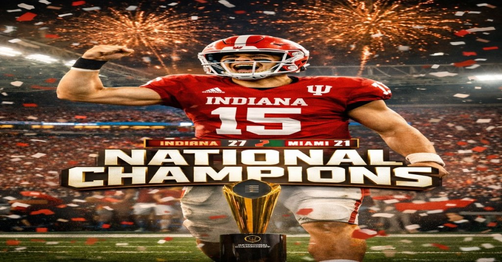 Imagine a team with the most all‑time losses in FBS history suddenly standing at the summit of college football. That’s exactly what happened as the top‑ranked Indiana Hoosiers capped a fairytale run by beating the No. 10 Miami Hurricanes 27‑21 to secure their first ever national championship and complete a perfect 16‑0 season. It wasn’t a dominant blowout or a strategic masterpiece from start to finish…it was a gritty, emotional, borderline absurd victory that felt more like a Hollywood script than a Monday night football game.